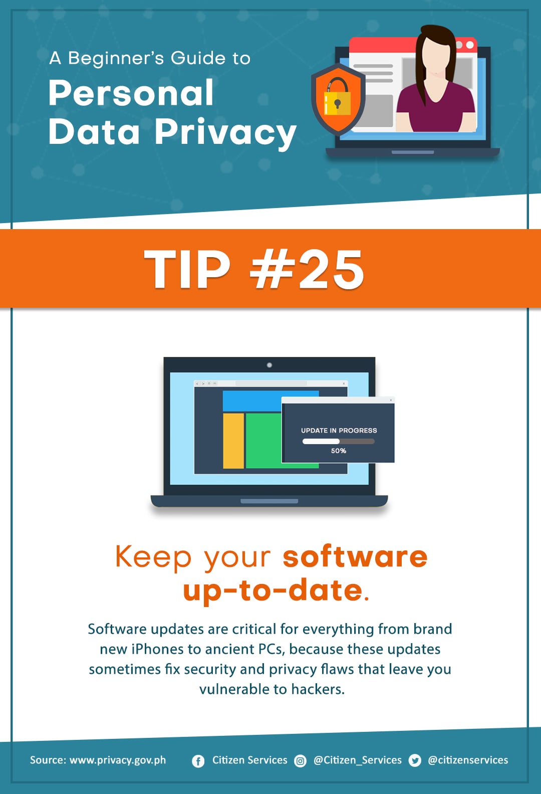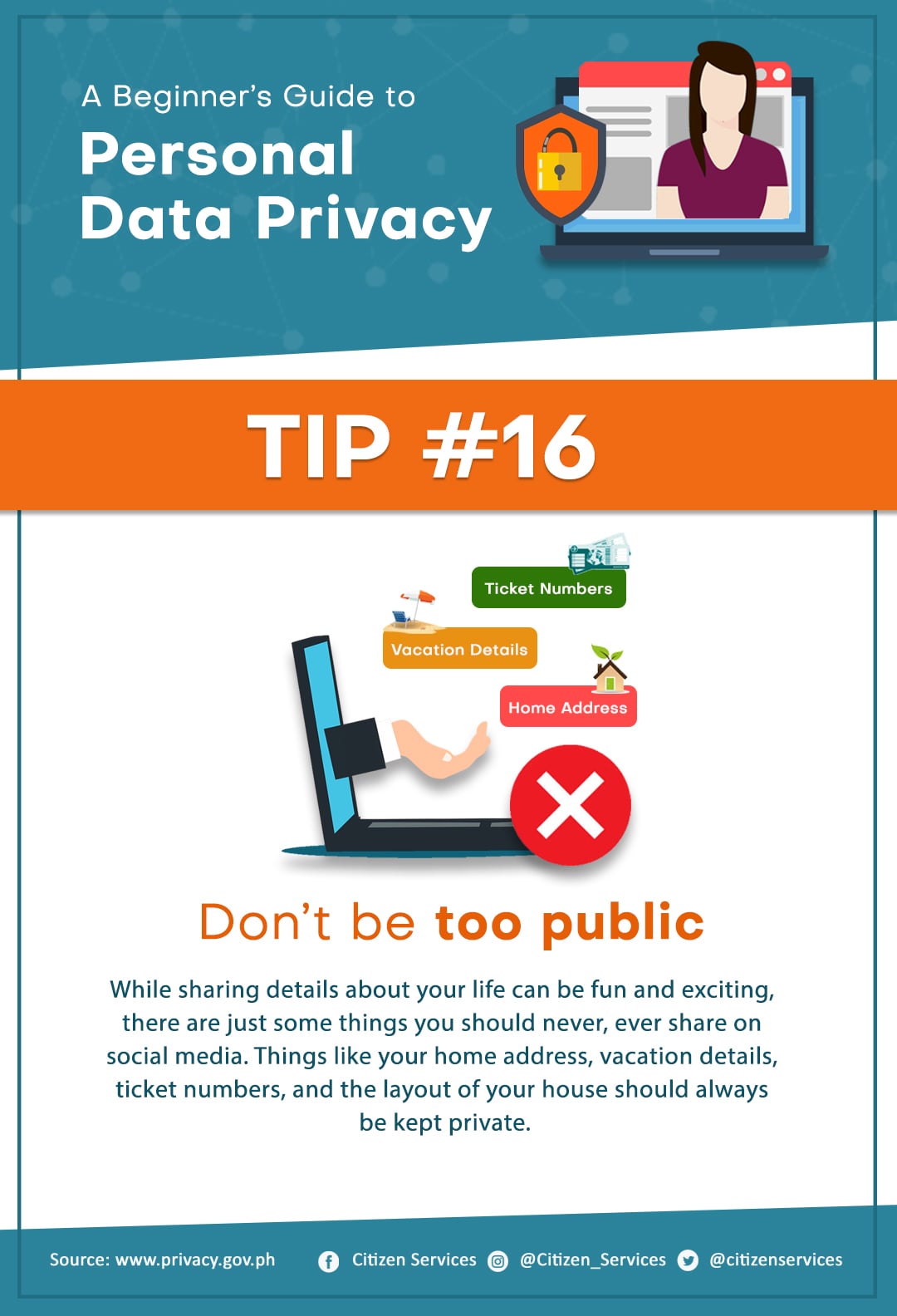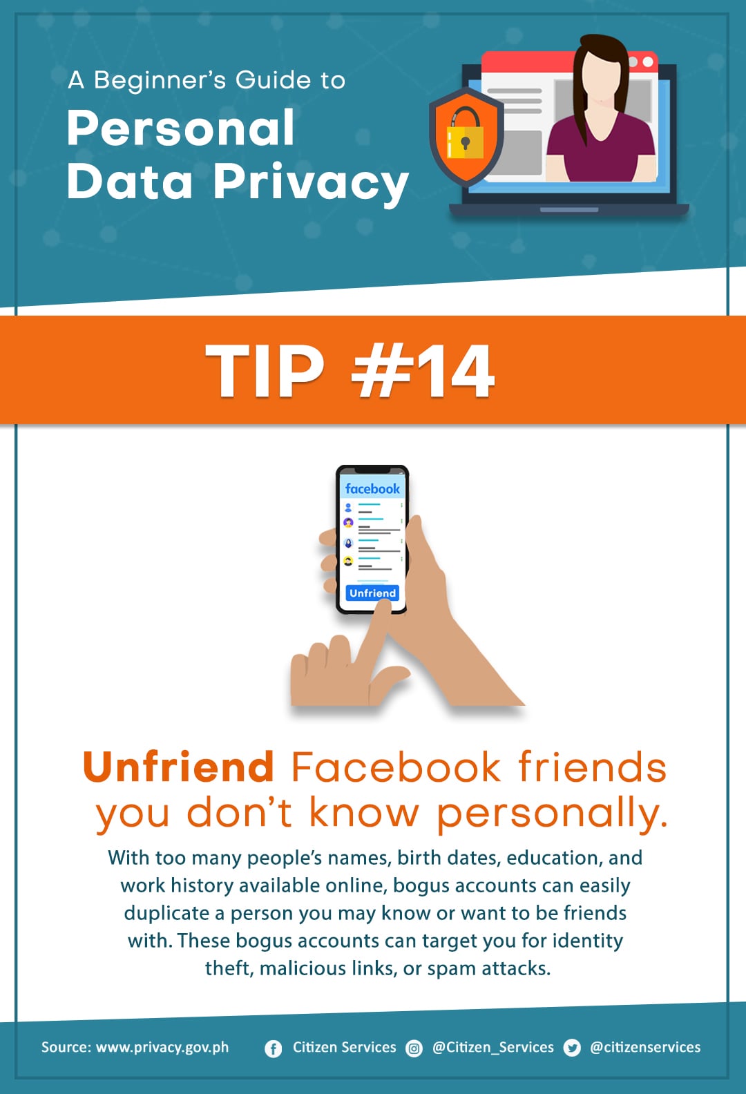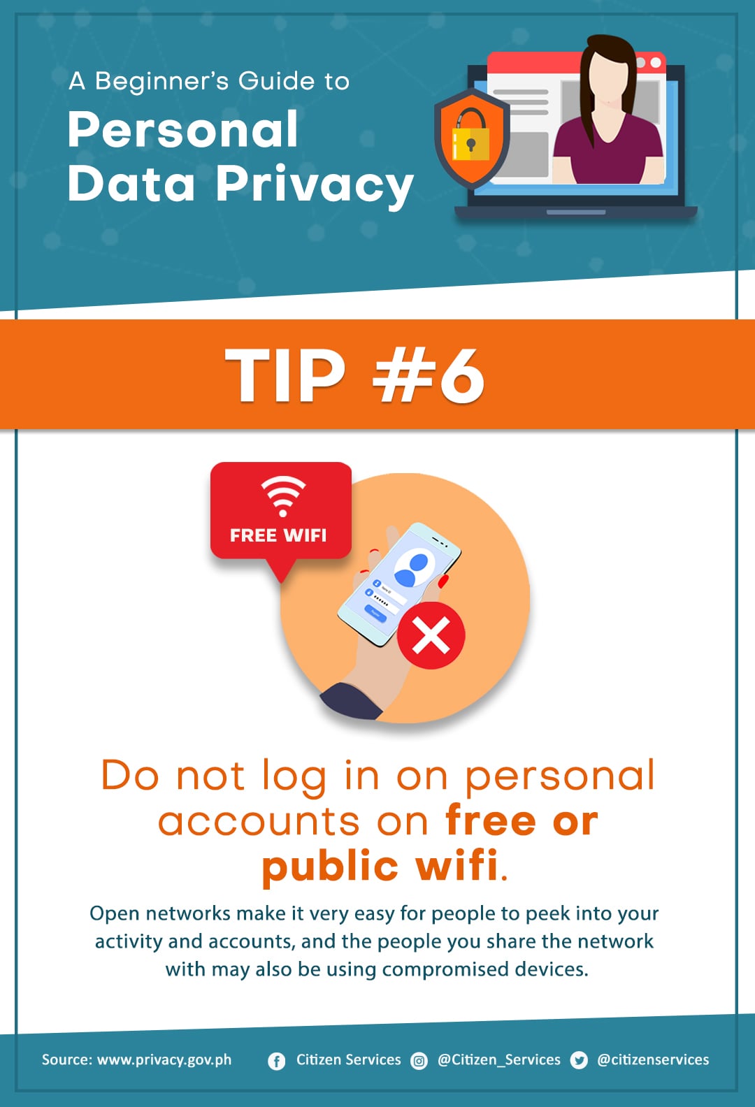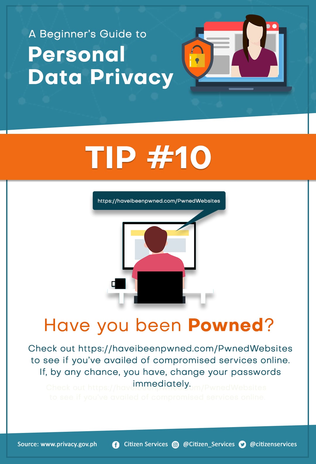 Protect yourself from online hackers. Keep your personal safe and secure. Save and share these tips to keep your friends and family aware of the dangers of leaving your personal information unprotected online.