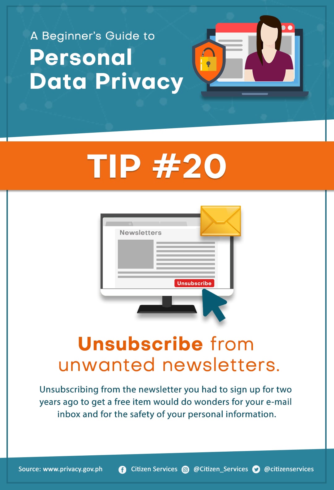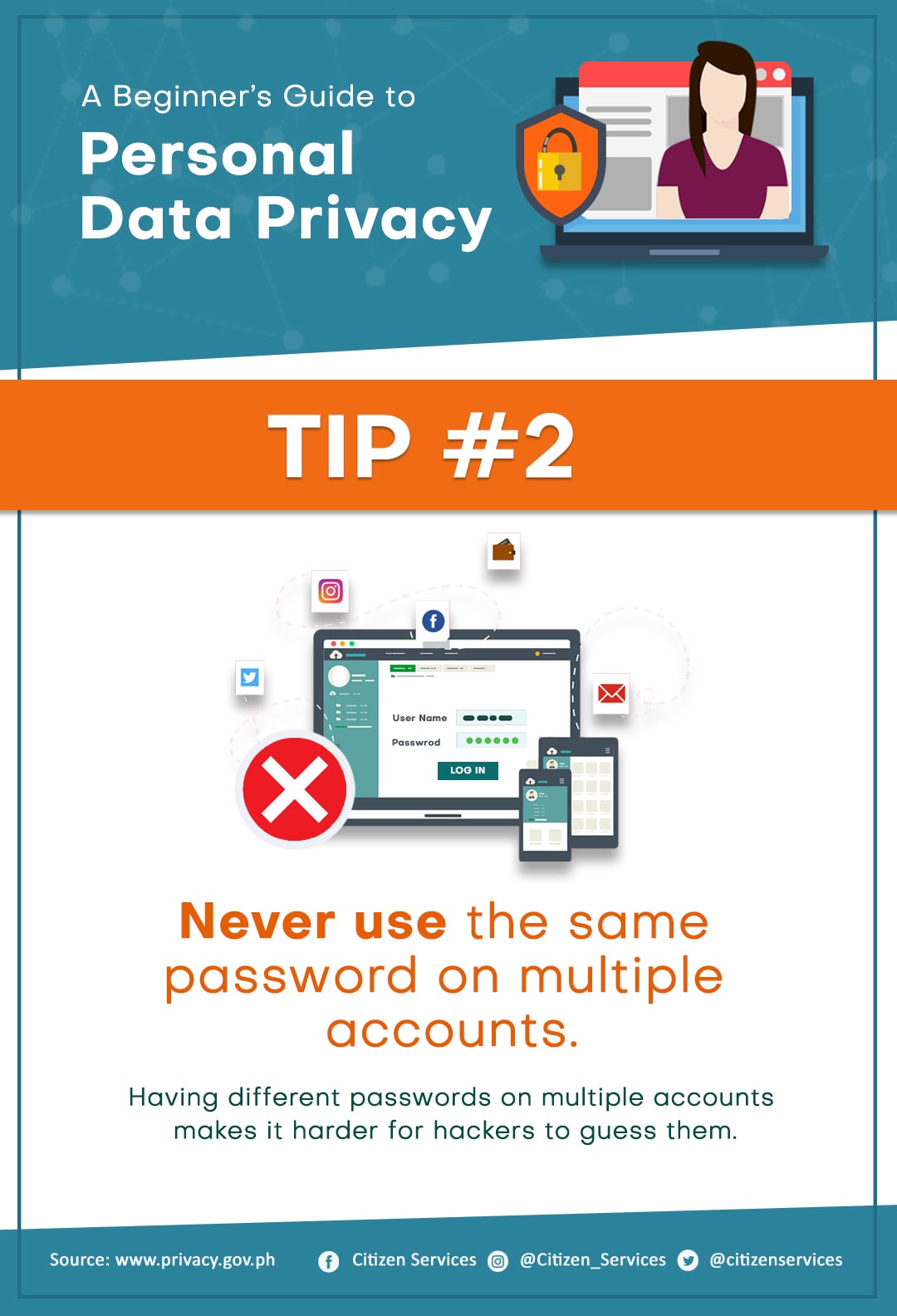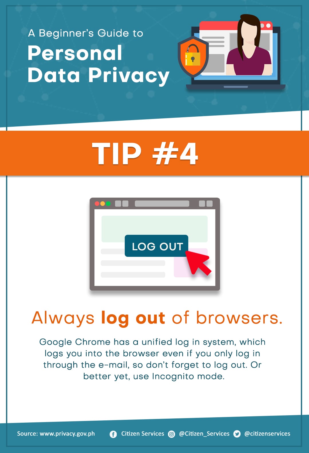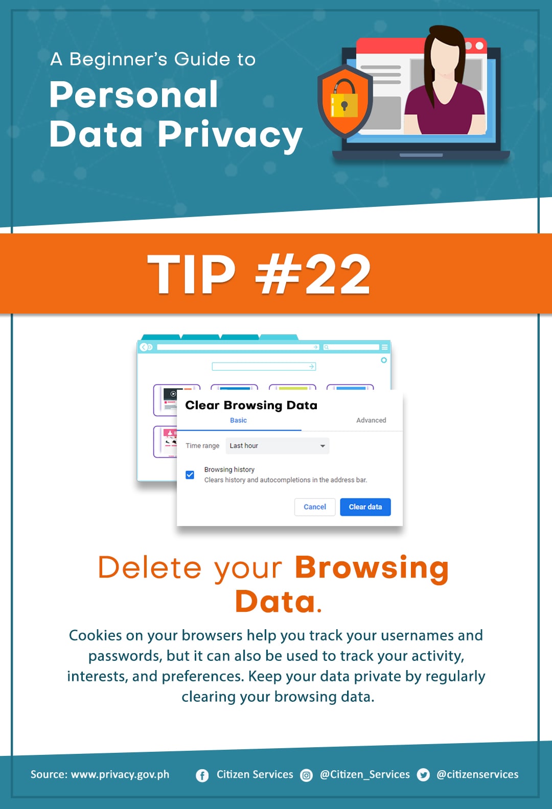 Protect yourself from online hackers. Keep your personal safe and secure. Save and share these tips to keep your friends and family aware of the dangers of leaving your personal information unprotected online.