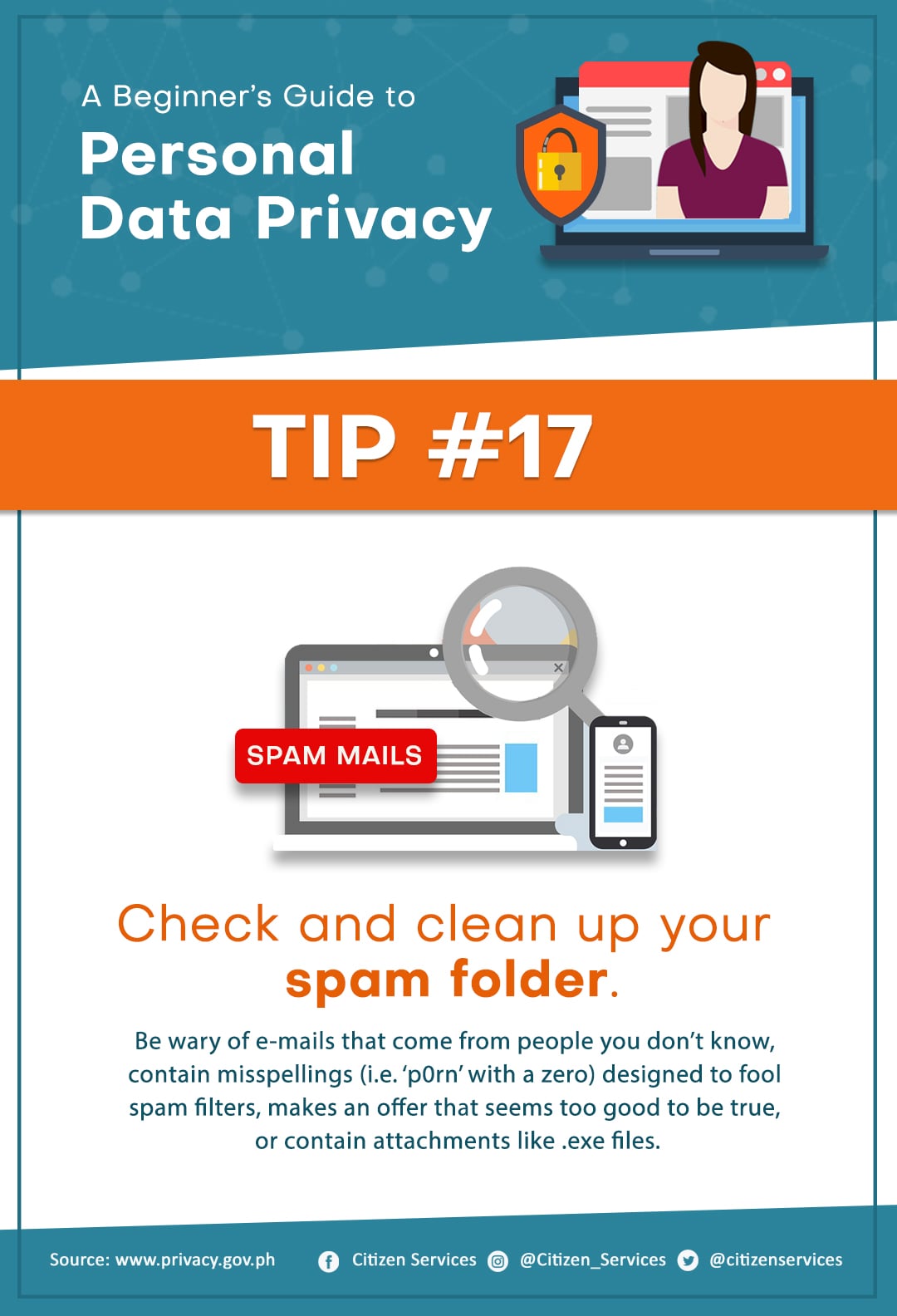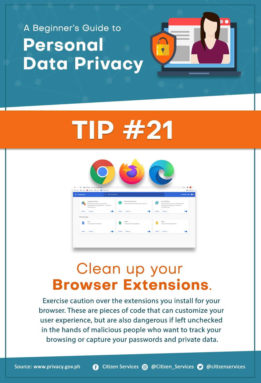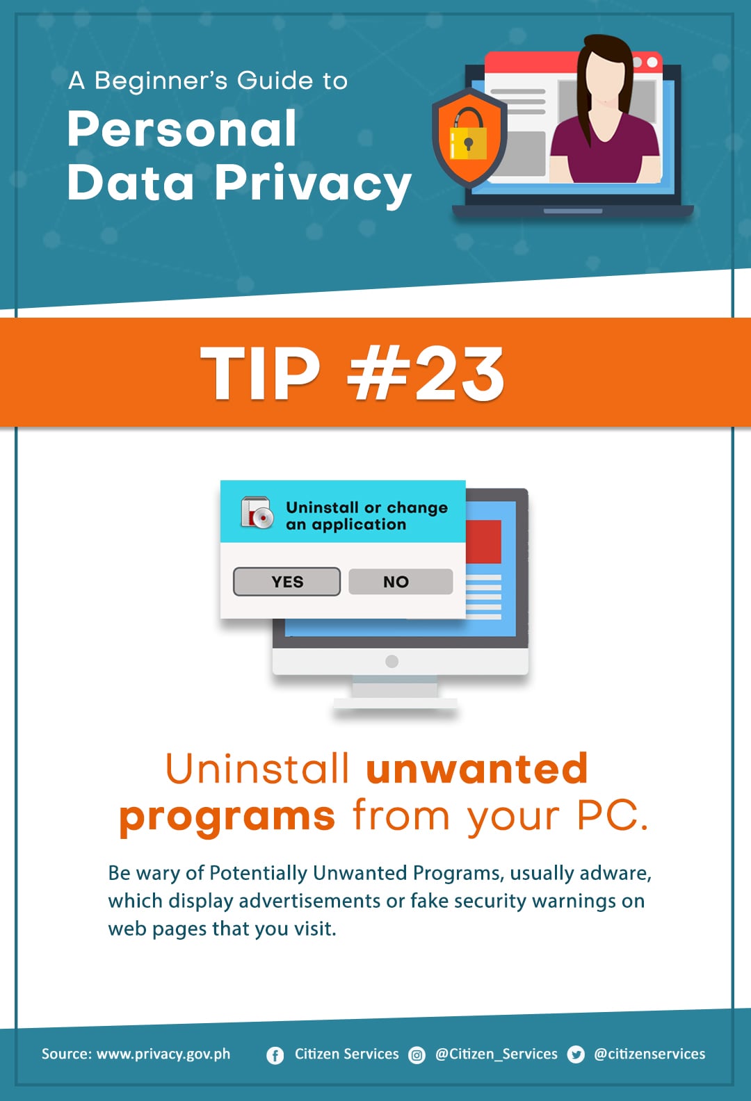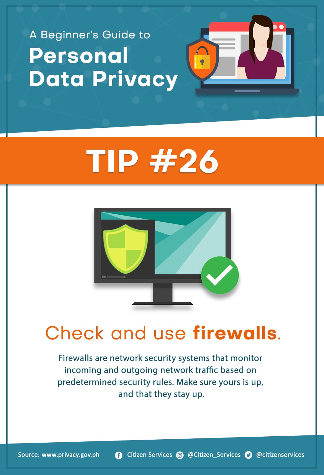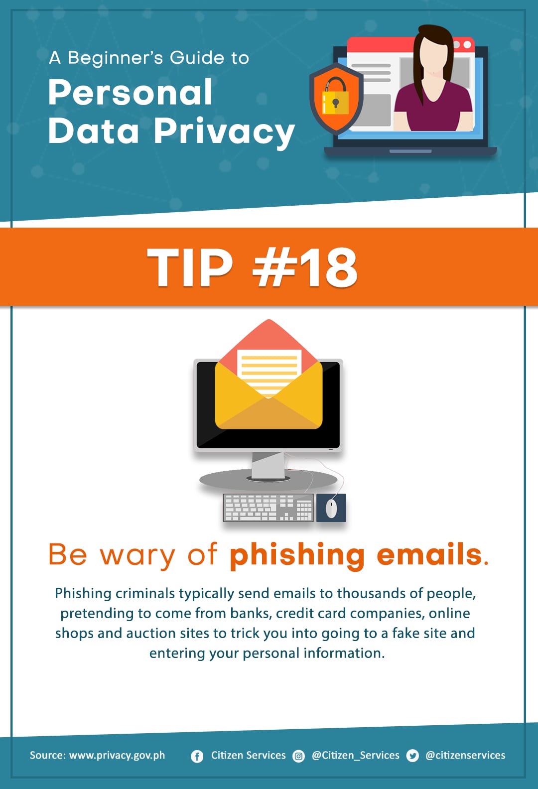 Protect yourself from online hackers. Keep your personal safe and secure. Save and share these tips to keep your friends and family aware of the dangers of leaving your personal information unprotected online.